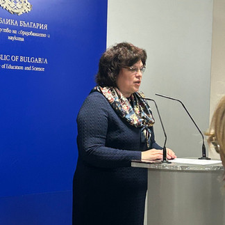 Когато министър Вълчев посети щанда ни, Стефан го посрещна с въпросите „Слушахте ли учителите и учениците тази година, господин Министър?“, „Написахте ли всички планове и програми?“, "Ще има ли увеличение на заплатите за учителите?" След първоначлния шок Министърът прие закачката с радост и даде положителни отговори. Така получи най-големия подарък и най-хубавото пожелание за Новата 2026 година.